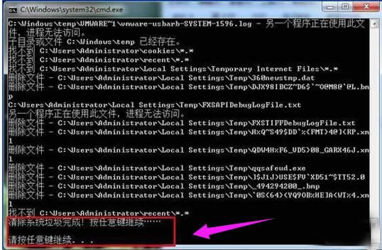 清理垃圾圖解詳情-5 清理垃圾,根據(jù)提示,點(diǎn)擊窗口,點(diǎn)擊鍵盤任意鍵結(jié)束,完成清理。