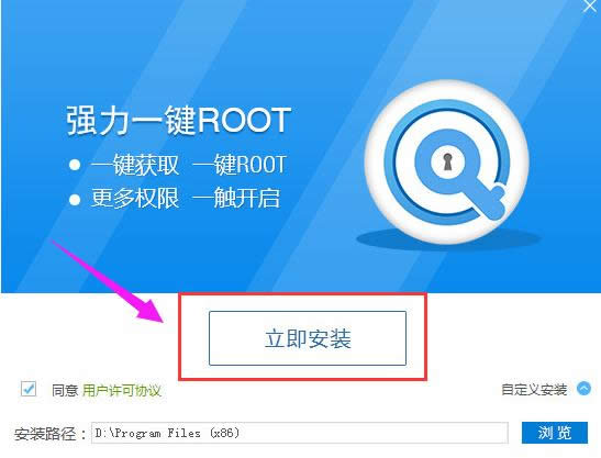root圖解詳情-2 點擊“瀏覽”,為軟件選擇一個安裝路徑,再點擊“立即安裝”