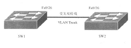 如下圖所示,用交叉網線把 SW1交換機的Fast Ethernet0/26端口和SW2交換機的Fast Ethernet0/26端口連接起來。