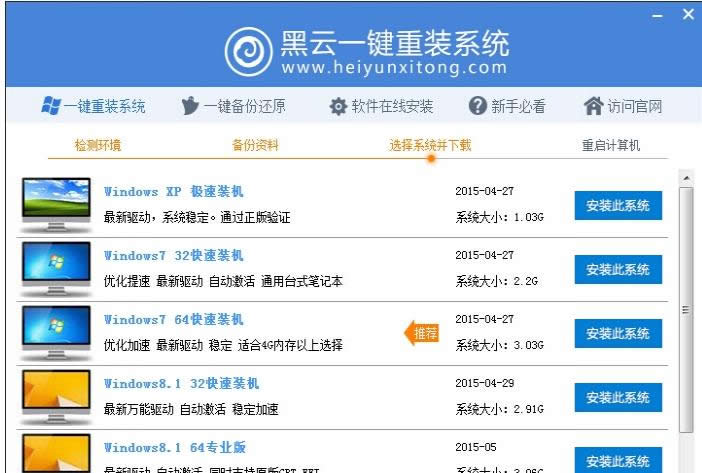 重裝系統(tǒng)圖解詳情-7 以上就是黑云一鍵重裝系統(tǒng)的使用教程了。 系統(tǒng)軟件一般是在計算機系統(tǒng)購買時隨機攜帶的,也可以根據(jù)需要另行安裝。 |