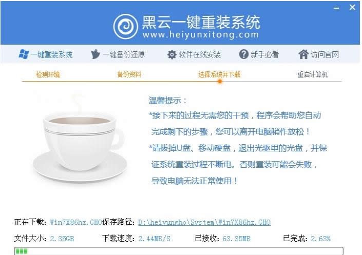 黑云圖解詳情-3 這里以安裝win7 32位系統(tǒng)為例,點擊安裝此系統(tǒng)后進入自動下載系統(tǒng)過程