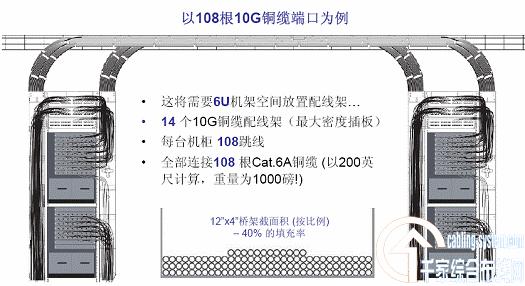 相同端口的銅纜與光纜所占用線槽的對(duì)比