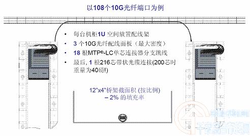 而事實(shí)上,要實(shí)現(xiàn)相同的性能卻只需少量的光纖就可以完全取代那些數(shù)據(jù)中心的IT經(jīng)理們需要在路徑、空間、機(jī)架以及垂直理線器中布放數(shù)量驚人的銅纜。舉例來(lái)說(shuō),一個(gè)能夠在10G網(wǎng)絡(luò)上傳輸108個(gè)通路的216芯光纜,直徑僅0.7英寸,而銅纜要達(dá)到相同性能就需要幾乎兩倍直徑,談到這些線纜的重量,如果采用六類(lèi)增強(qiáng)型銅纜,按照200英尺的長(zhǎng)度計(jì)算,其重量將近1000磅;而同樣長(zhǎng)度的216芯光纜,重量?jī)H40磅。