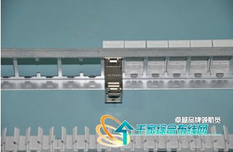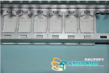 圖7前端面板卡接結構 該配線架可輕松實現6類屏蔽模塊的裝配,如下圖: