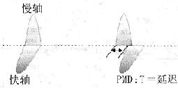 圖1 兩個偏振模不同的傳輸速度導致PMD 在單模光纖傳輸中,光波的基模含有兩個相互垂直的偏振態。理想光纖的幾何尺寸是均勻的,且沒有應力,因而光波在這兩個相互垂直偏振態以完全相同的速度傳播,在光纖的另一端沒有任何延遲。然而,在實際的光纖中,兩個相互垂直的偏振模以不同的速度傳播,因而到達光纖另一端的時間也不同(圖1)。這兩個相互垂直的偏振模在單位長度中的時間差,即是PMD,其單位為ps/√km。 PMD和色度色散對系統性能具有相同的影響:即引起脈沖展寬,從而限制了傳輸速率。然而,PMD比色度色散小幾個數量級。而且它僅在數字系統和具有高放大調頻模擬系統中采用一定的色散補償時,才成為重要的考慮因素。此外,這一限制受傳輸方式、環境和安裝條件的影響。 與具有確定性的色度色散不同,任意一段光纖的PMD是一個服從Maxwllian分布的隨機變量。其瞬時PMD值隨波長、時間、溫度、移動和安裝條件的變化而變化,此外,研究表明長距離光纖的PMD(真實情況)具有隨長度平方根而變化的關系[1],因而PMD的單位是ps/vkm。 引起PMD的因素可以是內在的(由制造過程所產生的纖芯或包層的不對稱性和玻璃表面的應力)和外在的(外部應力、彎曲和扭曲)。這些因素和距離結合在一起引起雙折射和模偶合,從而產生PMD。雙折射是指玻璃的折射率是沿軸向變化的。由于兩個偏振模的傳播速度不同,因而引起了接收信號的延遲。模偶合是指在兩個偏振模之間的能量傳遞而引起的脈沖擴展和延遲。 三、對系統PMD的考慮