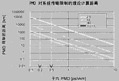 圖2 由PMD限制傳輸的理論距離 直到幾年以前,在數字和模擬系統中,當數據傳輸率較低和距離相對較短時,PMD對單模光纖系統的影響微不足道。隨著對帶寬需求的增長,特別是在10Gb/s及更高速率的系統中,PMD開始成為限制系統性能的因素,因為它會引起過大的脈沖展寬或造成過低的信噪比(SNR)。圖2展示了由PMD限制傳輸的距離[2]。 由于PMD限制的系統最大距離,從理論上可由下面公式得出: