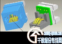 異形針結(jié)構(gòu)設(shè)計在水晶頭插入后,其接觸點不在同一個平面上,并由此八個接觸點彼此間的距離更遠,使六類系統(tǒng)鏈路能獲得更好的近端串音(NEXT)。 除此之外,異形針結(jié)構(gòu)還加強了金針與水晶頭等金片的可靠接觸,并有效地增加其彼此的接觸面。 特點三:垂直進線方式及IDC分線結(jié)構(gòu)設(shè)計