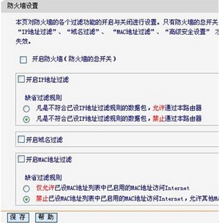 四、檢查路由器防火墻中過濾規則是否過濾了該無線網卡。如果設置了過濾規則,則建議先將防火墻關閉進行測試。