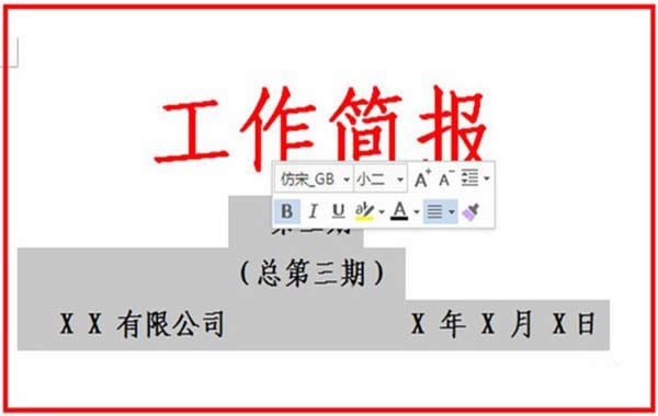軟件是一系列按照特定順序組織的計算機數(shù)據(jù)和指令的集合。一般來講軟件被劃分為編程語言、系統(tǒng)軟件、應(yīng)用軟件和介于這兩者之間的中間件。硬件是“計算機硬件”的簡稱。與“軟件”相對,電子計算機系統(tǒng)中所有實體部件和設(shè)備的統(tǒng)稱。 現(xiàn)在很多公司都需要制作工作簡報,用于部門的互相的交流,但是很多大學(xué)生剛?cè)肼毑欢趺醋龉ぷ骱唸蟮,今天小編就教教大家怎么使用word制作工作簡報吧,大家跟小編一起往下看吧。 1、打開word空白文檔,輸入工作簡報四個字,當然一般都要求輸入具體是什么簡報,要輸入具體的簡報名字的,輸入文字后,選中文字,設(shè)置文字的字號,字形和字體顏色。