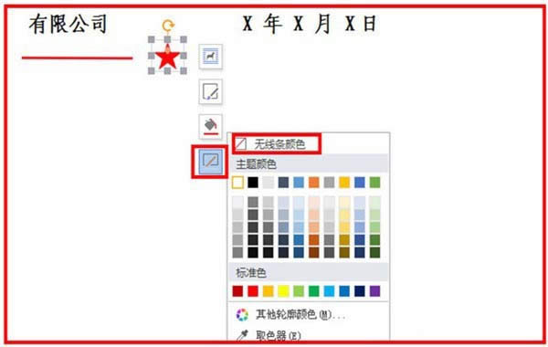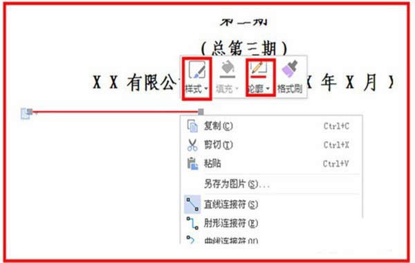 4、直線出現(xiàn)在文檔中,延長直線,單擊選中,會出現(xiàn)對直線的形狀和顏色設(shè)置。