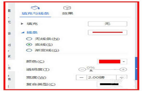 5、也可以選中直線,單擊右鍵,找到設(shè)置對象格式,單擊一下,在右側(cè)就會出現(xiàn)對線條的具體設(shè)置功能了,有粗細,顏色,填充等。
