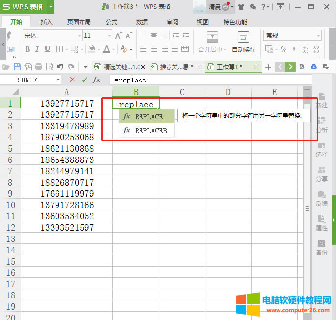 wps REPLACE函數應用:讓手機號變成****號隱藏起來