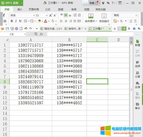 輸入公式了后,我們就不用一個個輸入,直接下拉列表就可以直接計算出全部的手機號: