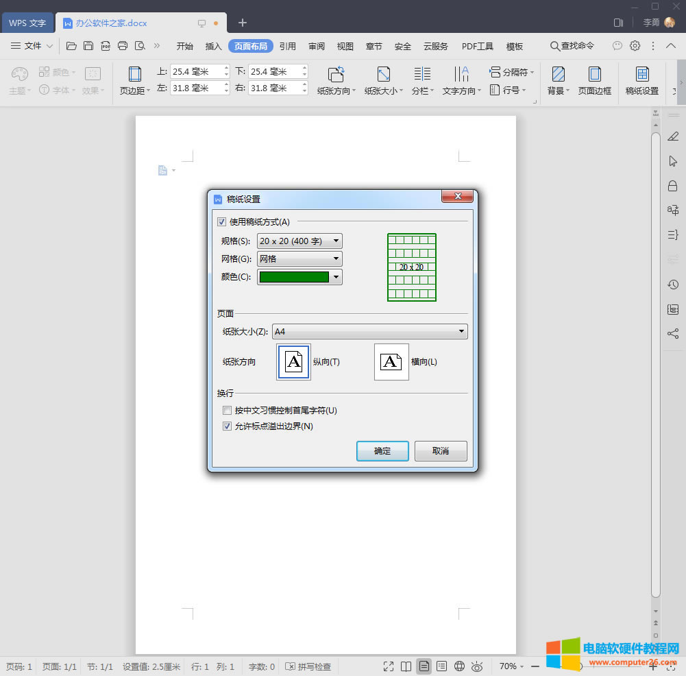| 辦公軟件是指可以進行文字處理、表格制作、幻燈片制作、圖形圖像處理、簡單數據庫的處理等方面工作的軟件。目前辦公軟件朝著操作簡單化,功能細化等方向發展。辦公軟件的應用范圍很廣,大到社會統計,小到會議記錄,數字化的辦公,離不開辦公軟件的鼎力協助。另外,政府用的電子政務,稅務用的稅務系統,企業用的協同辦公軟件,這些都屬于辦公軟件。 今天,小編教大家一個利用wps制作標準A4作文稿紙的方法,家里有小孩的家長不要錯過。 第一步:打開wps office,此時紙張默認為A4,點擊工具欄中的『頁面布局』,再點擊『稿紙設置』; 第二步:彈出『稿紙設置』對話框后,按照下圖示范進行設置,完成設置后,點擊右下角的『確定』; 第三步:獲得作文稿紙400字電子模板。 Office辦公軟件是辦公的第一選擇,這個地球人都知道。 |