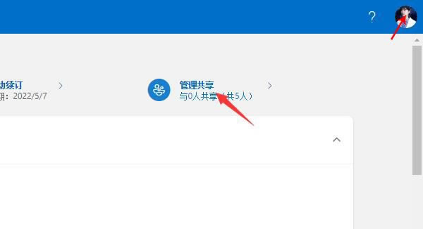 圖6:訂閱安裝 二、Microsoft 365如何共享訂閱 購買Microsoft 365后,可以通過軟件的共享訂閱功能,分享自己的軟件使用權限。下面,小編就向大家演示一下,共享訂閱的兩種方法。 如圖7所示,點擊個人賬戶圖標,在彈出的賬戶界面右側,可以找到“管理共享”的選項,點擊該選項。