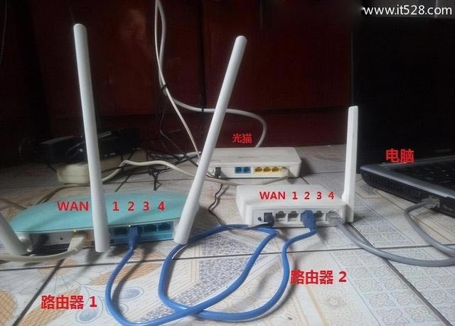 注意,這是兩個路由器LAN如果連接口,不要連接錯誤,否則不能上網(wǎng)。