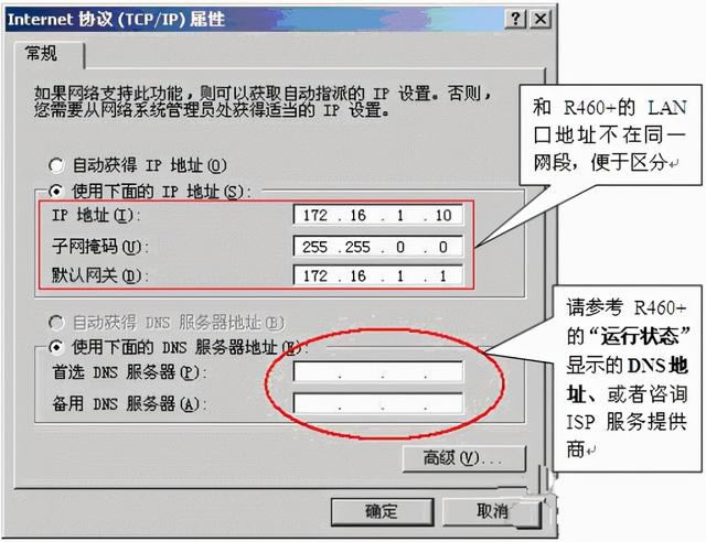 按照這種接線方法,只需進(jìn)行以下設(shè)置: 首先是電腦2IP地址配置為192.168.1.X (X取自然數(shù)范圍2-254)http://192.168.1.1進(jìn)入WR541G 在網(wǎng)絡(luò)參數(shù)-LAN在口設(shè)置中,將LAN口IP地址改為: 172.16.1.1(注:此地址可更改為任何與原地址段不同的內(nèi)網(wǎng)地址),保存提示重啟路由器。 接下來是電腦IP地址修改為172.16.1.X (X 取自然數(shù)范圍2~254),如下圖所示: