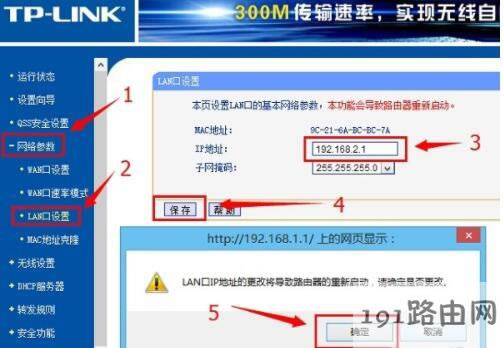 注意問題:把路由器LAN口IP地址修改為 192.168.2.1后,會提示重啟,重啟完成之后,就需要在瀏覽器中輸入 192.168.2.1,來登陸到路由器的設(shè)置界面了。