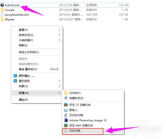 u盤示例9 方法2: 不用修改Google和skypee這兩個文件夾的屬性,直接打開,在里邊新建一個文本文件,不用寫任何東西,保存。將文件名修改為 AutoIt3.exe,包括擴展名。
