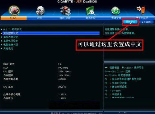 技嘉主板示例4 用左右方向鍵,移到“BIOS功能”這一項來