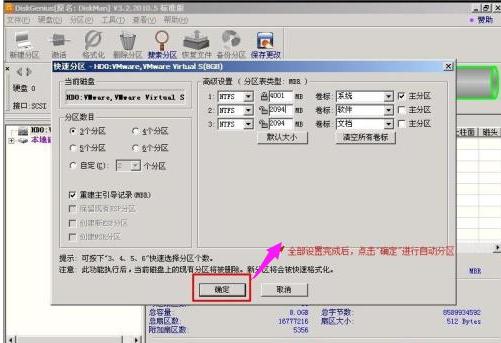 分區(qū)工具示例9 設(shè)置分區(qū)容量完畢,然后點(diǎn)擊確定