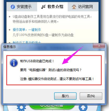 晨楓載圖6 制作完成后正確設置電腦BIOS(設置方法請參照設置U盤啟動教程)即可從U盤啟動了。為了驗證U盤啟動制作是否成功,可以運行模擬啟動。
