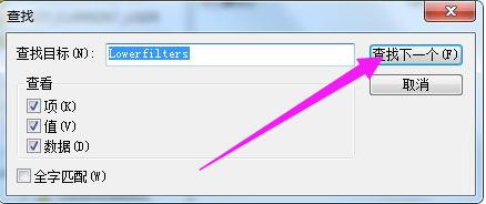 大容量載圖3 進入“HKEY_LOCAL_MACHINE\SYSTEM\CurrentControlSet\controlset003”,按下“Ctrl+F”快捷鍵,查找“Lowerfilters”,搜索到后將其刪除。