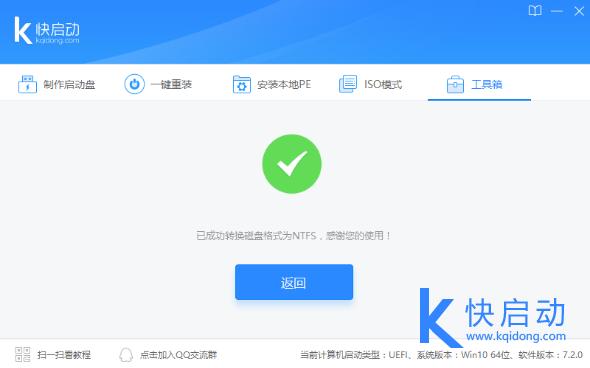 ![]() 3、稍等片刻,轉換NTFS格式的操作就完成了,關掉軟件即可,如下圖所示: