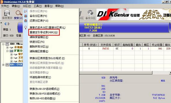 3、當我們重建分區表后,選擇“重建主引導記錄(MBR)(M)”;