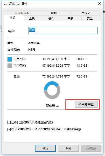 清除電腦垃圾載圖1 2、再硬盤屬性界面找到“磁盤清理”,點擊打開,下圖所示: