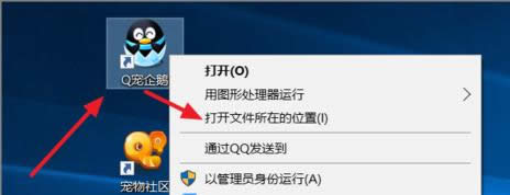 寵物載圖1 右鍵點(diǎn)擊打開Q寵企鵝和寵物社區(qū)所在位置,若是其他低版本的Windows系統(tǒng),則找到安裝QQ所在文件夾找到QQpet直接刪除。