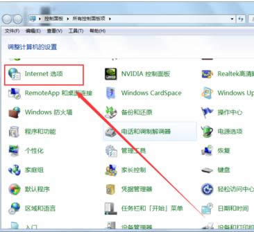 緩存載圖6 進入到控制面板的首頁后,找到Internet選項。
