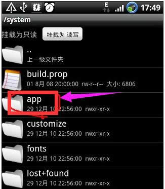 管理器載圖4 里面就是系統(tǒng)程序了,每個程序有兩個文件,apk、odex,可以都刪也可以保留apk放到sd卡里以后要了裝
