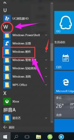 系統附件程序載圖3 找到W開頭的就點擊圖片上的箭頭所指的地方,這里就是要需找的附件了