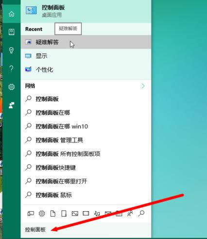 更新系統載圖1 輸入“控制面板”,并點擊【疑難解答】里面的“控制面板”結果。