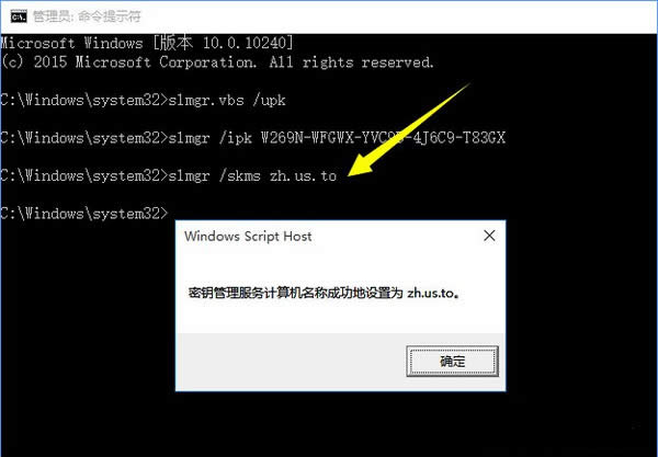 激活密鑰截圖(3) 4、然后繼續(xù)輸入以下命令: 01slmgr /skms zh.us.to 回車彈出“密鑰管理服務(wù)計(jì)算機(jī)名成功的設(shè)置為zh.us.to”的提示。成功連接上服務(wù)器