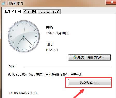 電腦日期圖解詳情-5 在“日期和時間”對話框,點擊“更改時區”。