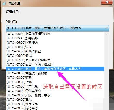日期圖解詳情-6 點擊對話框中的倒三角標志,然后選取自己需要設置的時區,接著點擊確定,這樣時區更改就完成