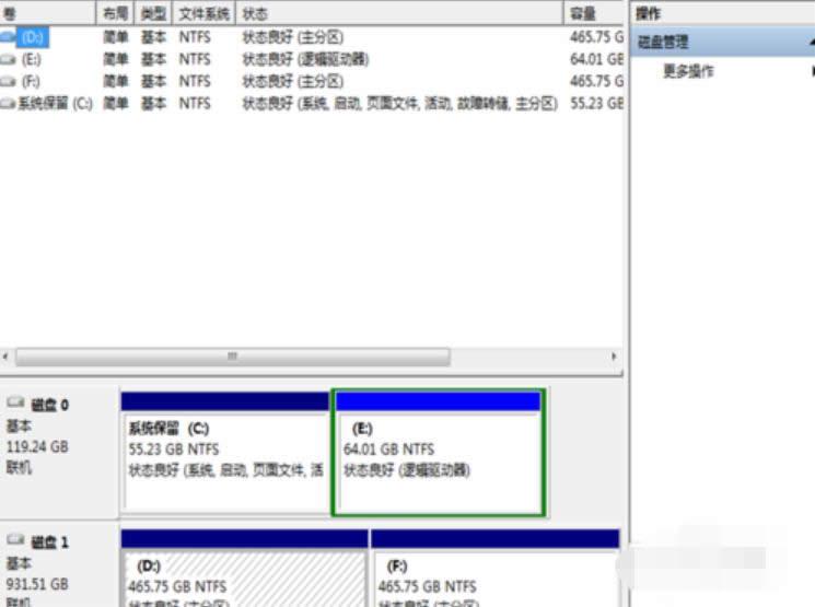 c盤空間不足載圖2 3,我們可以看到下面的磁盤顯示,我們的C盤和E盤屬于一個類型,所以可以將E盤空間給C盤。