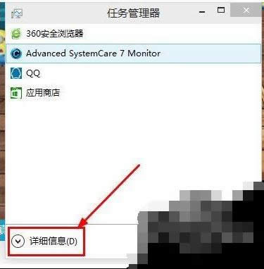 任務管理器圖解詳情-1 2、進入Win10任務管理器后,我們看到如下圖的簡略模式,界面上看著只有運行中的應用,這與xp/7/8有不同的地方;