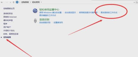 鼠標dpi載圖3 下一步,點擊左邊欄目的“輕松使用”,再點“更改鼠標的工作方式”。