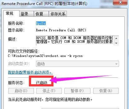 不可用載圖5 還需要確!癛PC(call)”服務(wù)正常開啟,只需要雙擊對應(yīng)的服務(wù),從打開的“屬性”窗口中查看“服務(wù)狀態(tài)”來判斷。