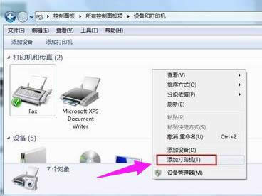 驅動載圖5 右擊窗口空白處,選擇“添加打印機”項。然后就可以按照窗口提示選擇相應的打印機驅動程序進行安裝啦。