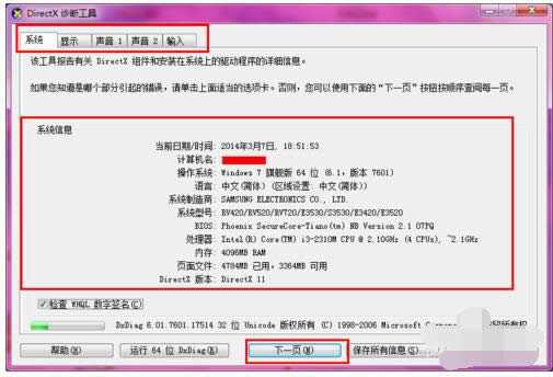 查看主板型號(hào)載圖1 接下來(lái)就會(huì)出現(xiàn)“DirectX診斷工具”,可以在里面查看到基本的信息了,包括主板型號(hào)。