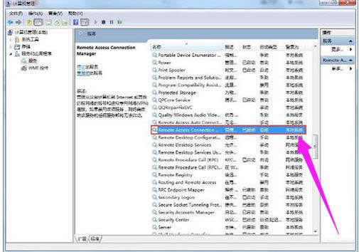 寬帶連接錯誤載圖7 右側找到:Remote Access Connection Manager并檢查啟動類型是否為:手動。