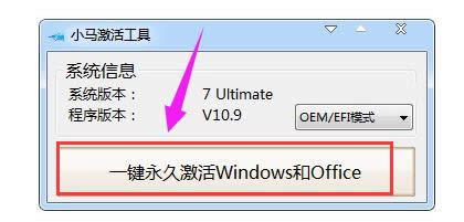 win7載圖3 運行后,會出現小馬Win7激活工具界面,點擊一鍵永久激活Windows和Office。
