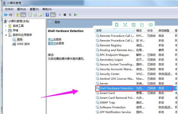 Win7圖解詳情-2 找到“Shell Hardware Detection”服務(wù)