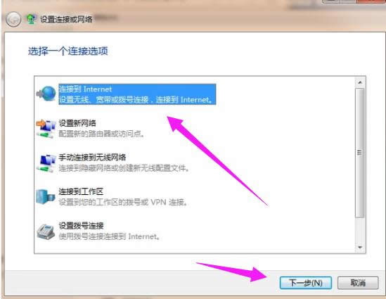 電腦寬帶圖解詳情-2 選擇創(chuàng)建類型為連接到internet。