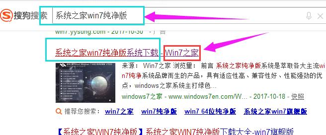 Windows 7,中文名稱視窗7,是由微軟公司(Microsoft)開發的操作系統,內核版本號為Windows NT 6.1。Windows 7可供家庭及商業工作環境:筆記本電腦 、平板電腦 、多媒體中心等使用。和同為NT6成員的Windows Vista一脈相承,Windows 7繼承了包括Aero風格等多項功能,并且在此基礎上增添了些許功能。 使用硬盤安裝windows7系統是眾多系統安裝方法最簡單的一種,可以在原有系統的基礎上不借用第三方軟件或工具,就能夠進行系統的安裝,對于小白用戶來說還是蠻適合的。下面就給大家帶來系統之家的win7純凈版下載教程。 雖說win0是當今的系統安裝潮流,很多用戶都紛紛將自己的系統升級成為Win10正式版。但是一些用戶仍然堅持的認為win7系統比較好用,于是想下載win7純凈版系統。但是不知道怎么操作,電腦小白可是沒有操作過的,那么接下來,小編就教大家如何在系統之家下載win7純凈版。 系統之家win7純凈版 在搜索框輸入“系統之家win7純凈版”,點擊搜索 找到“win7之家”,點擊進入