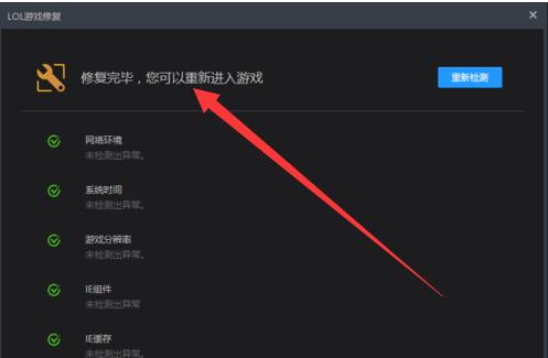游戲黑屏電腦圖解9 此時(shí)將開啟“LOL游戲修復(fù)”界面,待檢測(cè)LOL英雄聯(lián)盟游戲環(huán)境完成后,點(diǎn)擊“一鍵修復(fù)”按鈕,即可完成LOL的修復(fù)操作。